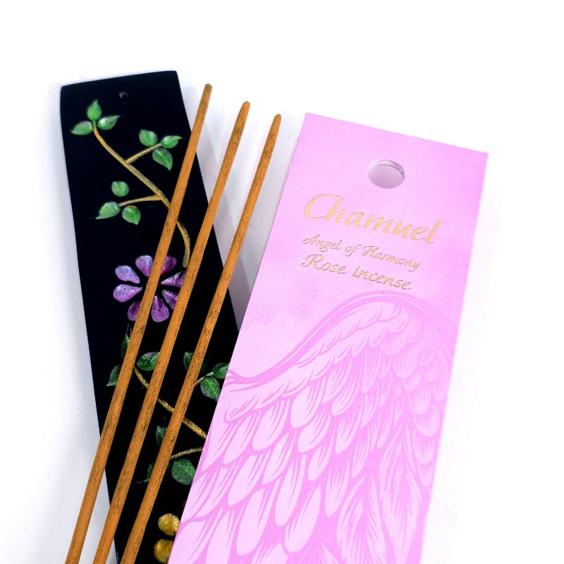 Betisoare parfumate Arhanghelul Chamuel, îngerul iubirii, cu arome predominante de trandafir. Bețe parfumate de calitate superioară.