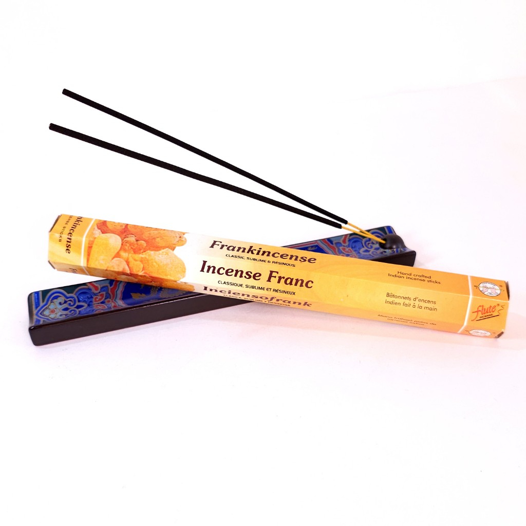 Bețișoare parfumate pentru ars Frankincense marca Flute. Bețe parfumate pentru fumigații cu arome purificatoare de tămâie.