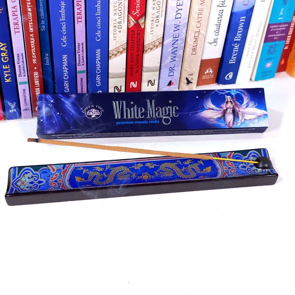 Betisoarele parfumate White Magic pot fi un ajutor in lucrul cu ghizii si ingerii de Lumina. Betele parfumate White Magic de la Green Tree au o aroma putin dulceaga, usoara, purificatoare.