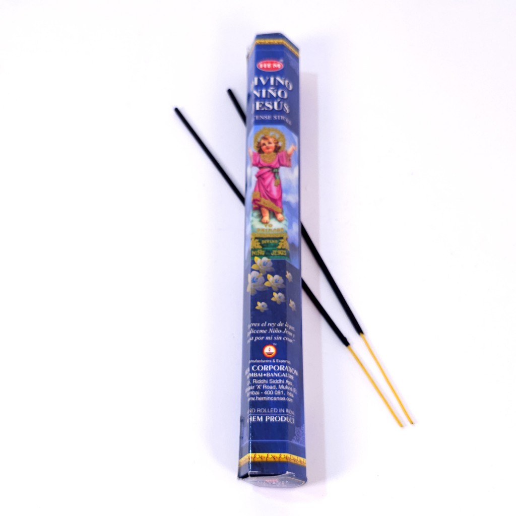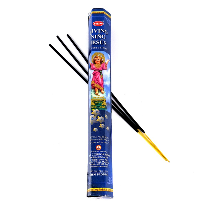 Bețișoare parfumate Divino Nino Jesus, Copilul Divin Iisus, marca Hem. Bețe parfumate care ard, perfecte pentru rugăciune, lucrul spiritual.