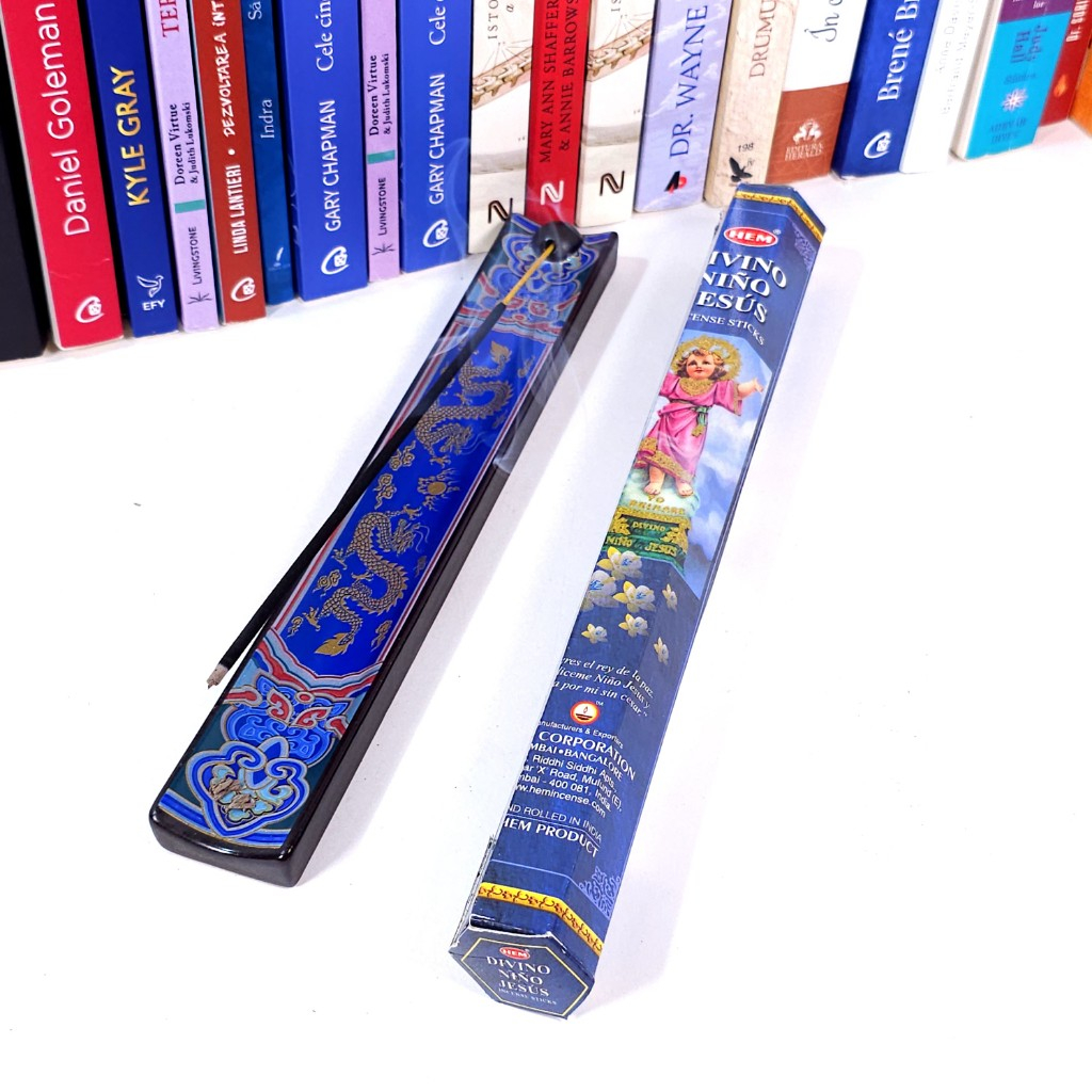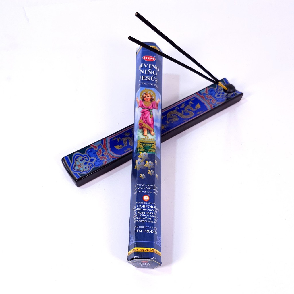 Bețișoare parfumate pentru ars Divino Nino Jesus marca Hem, consacrate lui Iisus. Bețe parfumate pentru a fi arse mai ales în timpul rugăciunii, lucrului spiritual, purificării și binecuvântării casei.