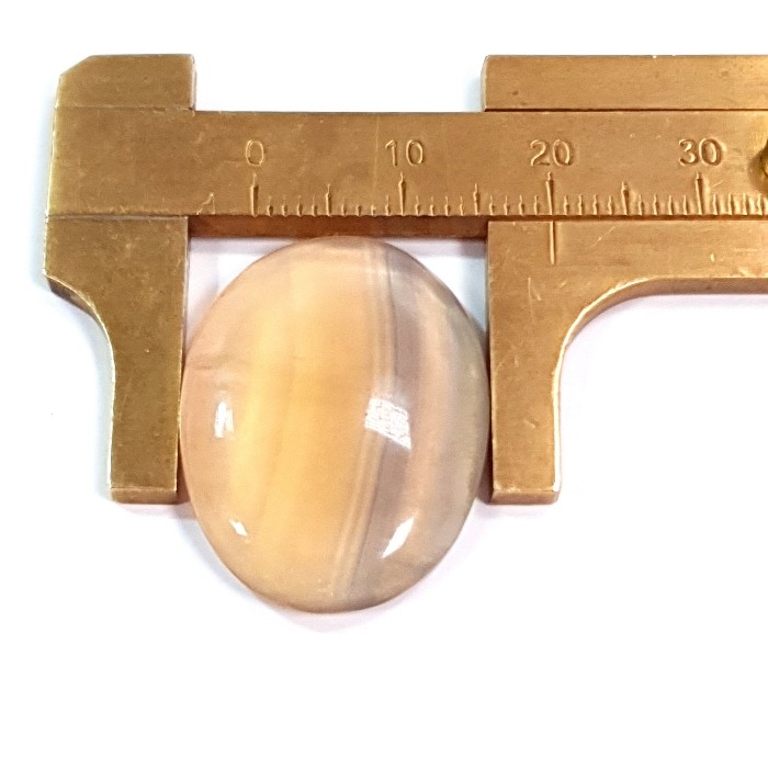 Dimensiunile cabochonului de fluorit: 2.7 cm lungime, 2 cm lățime, 0.6 grosime