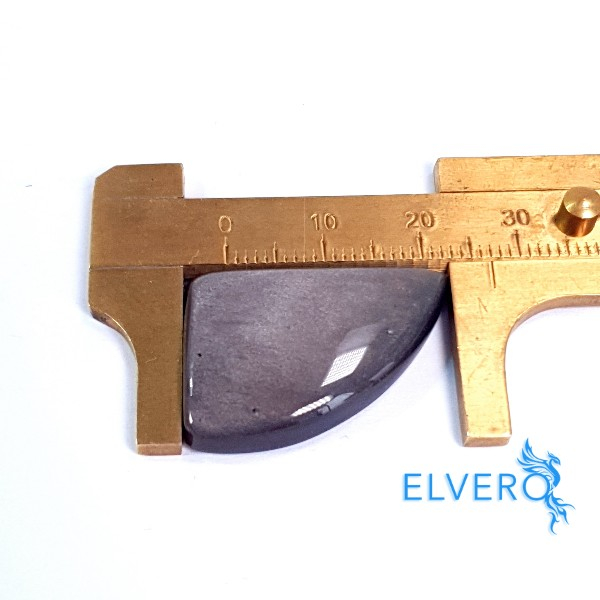 Dimensiunile cabochonului de obsidian argintiu: 2.7 cm lungime, 1.9 cm lățime, 0.5 cm grosime
