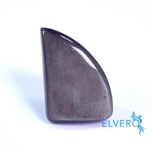 Un cabochon de obsidian argintiu, piatră semiprețioasă pentru montat în bijuterii sau pentru cristaloterapie. Cabochonul are frumoase irizații argintii și este bine șlefuit, având toate fețele foarte lucioase.