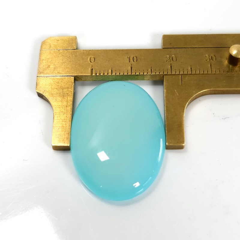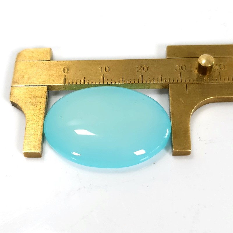 Dimensiunile cabochonului de onix aqua: 3.1 cm lungime, 2.2 cm latime, 0.65 cm grosime