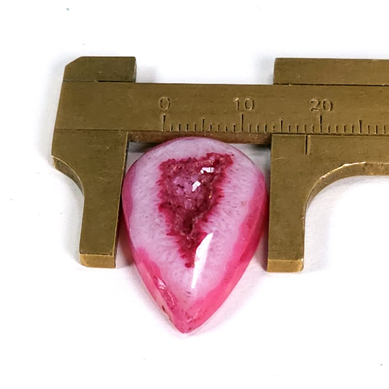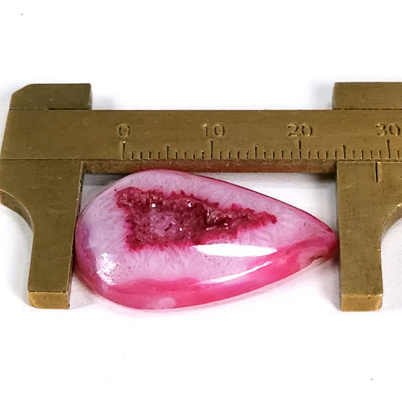 Dimensiunile cabochonului de agat druzy roz: 2.8 cm lungime, 1.8 cm latime, 0.6 cm grosime