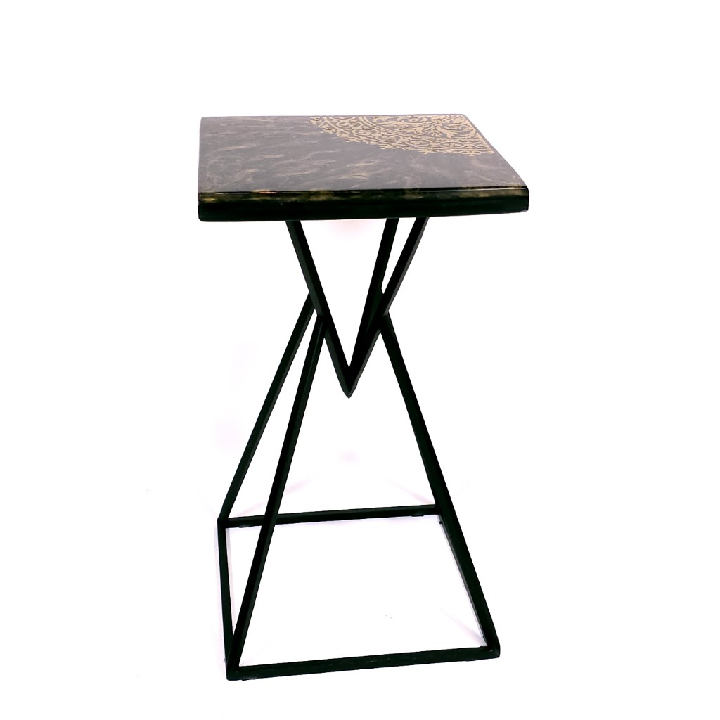 Picioarele mesei sunt metalice, vopsite în culoare neagră, cu model geometric. Picioarele măsuței unt fi dotate cu protecții pentru a preveni zgârierea podelei.