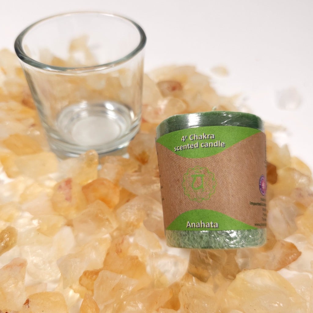 Aceasta lumanare pentru chakra inimii, Anahata, este realizata din stearina si uleiuri esentiale: lavandă, portocală si mandarină. Stearina sau ceara de palmier reprezintă o sursă regenerabilă de materie primă. Aceasta permite lumânării să aibă o flacără curată şi fără fum, arzând până la ultimă picătură. Aceste lumânări nu conţin plumb, zinc, ceară de albine, parafină sau aditivi sintetici iar fitilul este realizat din bumbac pur.