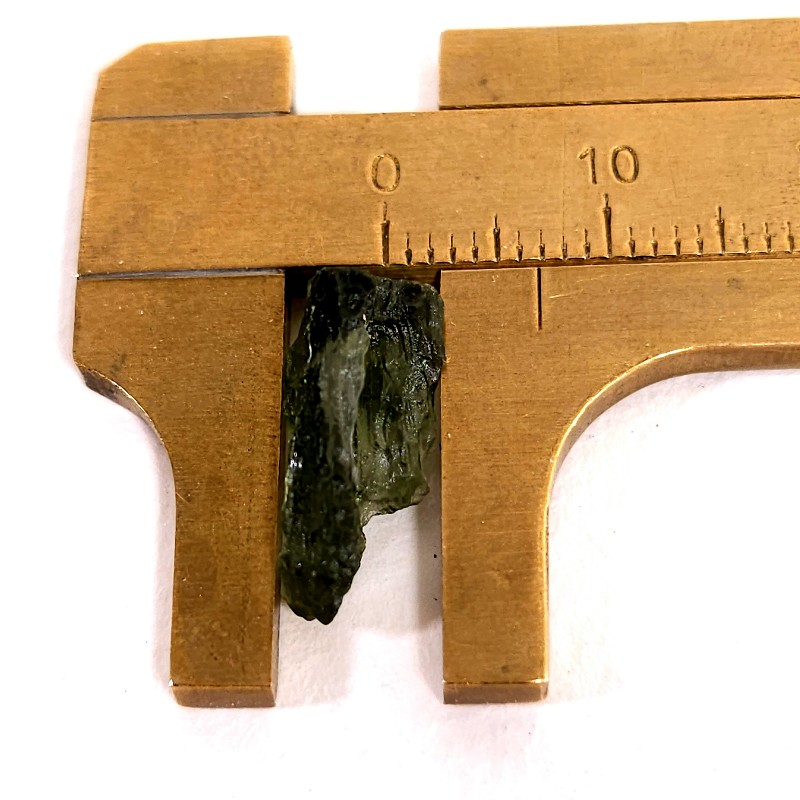 Dimensiuni piatră moldavit natural: 1.6 cm x 0.9 cm, 0.65 cm grosime