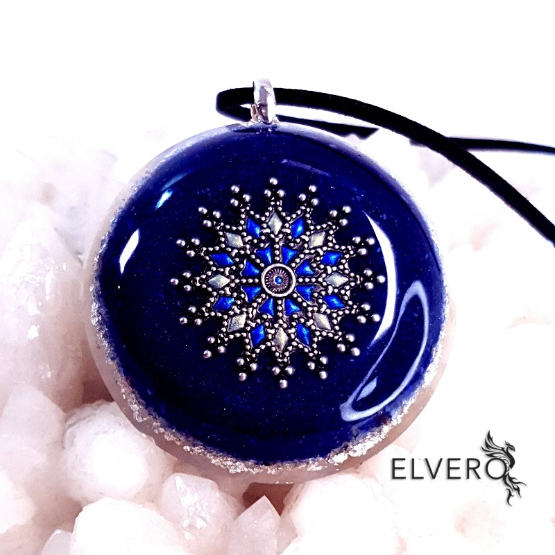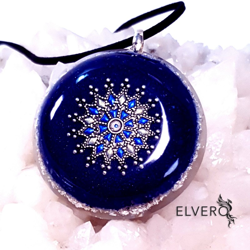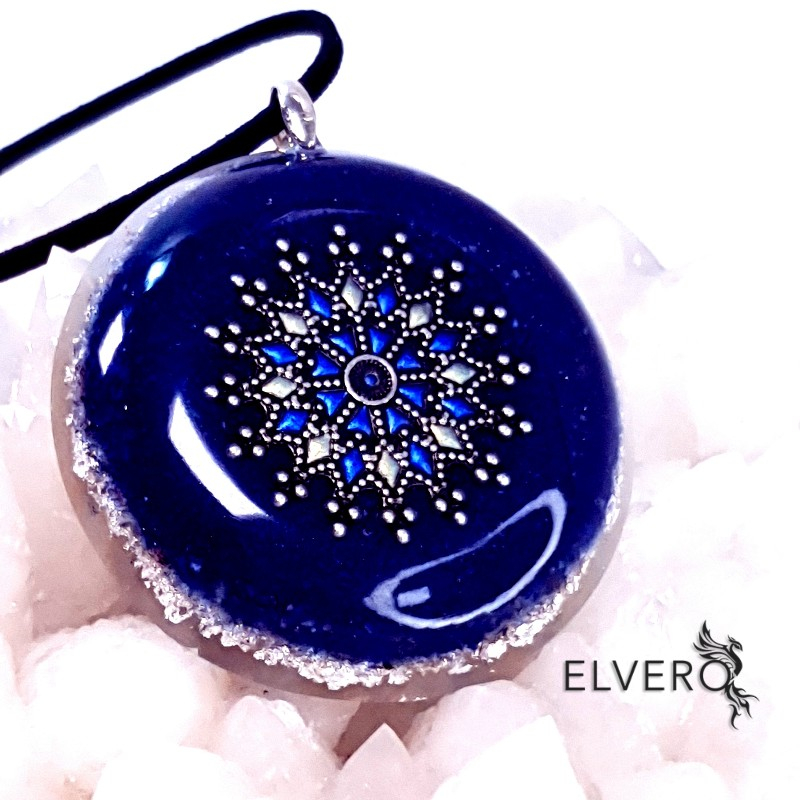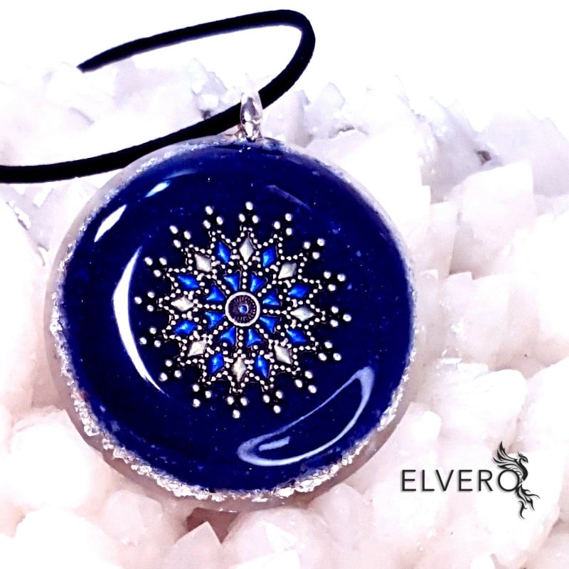 Medalionul mandala din pietre semiprețioase face parte din gama bijuteriilor ElveroR, realizată de Elvero începând cu anul 2012. Bijuteriile Elvero sunt bijuterii handmade, concepute și realizate în România, din pietre semiprețioase naturale.
